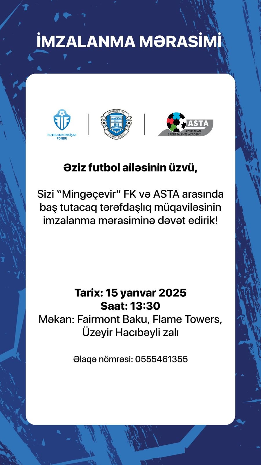 I Liqada mübarizə aparan "Mingəçevir" klubu ilə ASTA (Azerbaijan Sport Talents Academy) arasında tərəfdaşlıq müqaviləsi imzalanacaq.