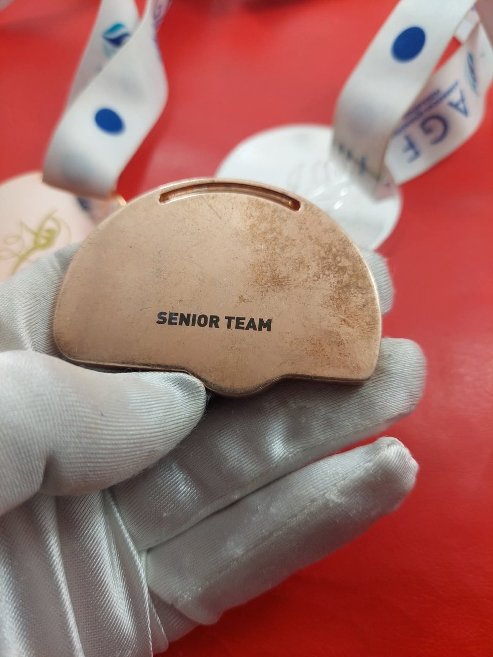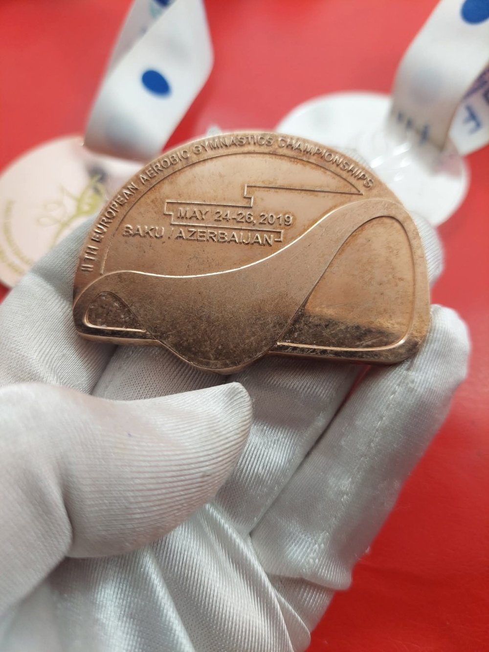 Ən maraqlısı isə 3-cü – bürünc medaldır. Çünki bu medal 24-26 may 2019-cu ildə Bakıda keçirilmiş aerobika üzrə XI Avropa çempionatının medalıdır. Bu medalın azərbaycanlılardan kimə aid olmasını araşdırmaq qərarına gəldik. Üzə çıxardıq ki, həmin Avropa çempionatında Azərbaycanı “aerodans” proqramında təmsil edən Elçin Məmmədov, Ayxan Əhmədli, Balaxanım Əhmədova, Nərminə Hüseynova, Nigar İbrahimbəyli, İmran İmranov, Akif Kərimli və Mədinə Mustafayeva qızıl medal qazanıb.
