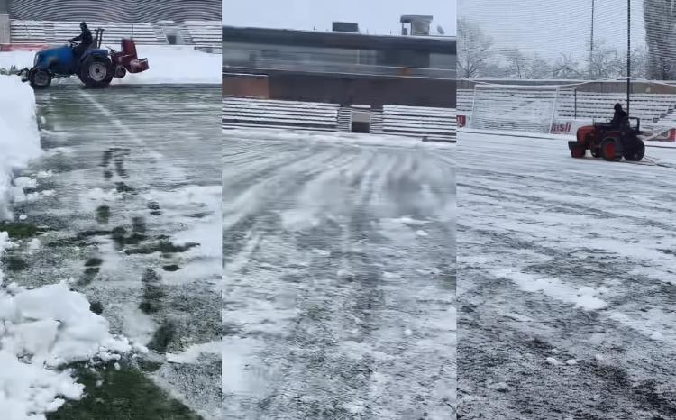Prosport.Az xəbər verir ki, stadion işçiləri qazonu qardan təmizləmək üçün səhər satatlarından səfərbər olub. Onlar meydanı matç saatınadək hazır vəziyyətə gətirməyə çalışır. Yağıntı davam edəcəyi halda oyunun baş tutmamaq ehtimalı var.