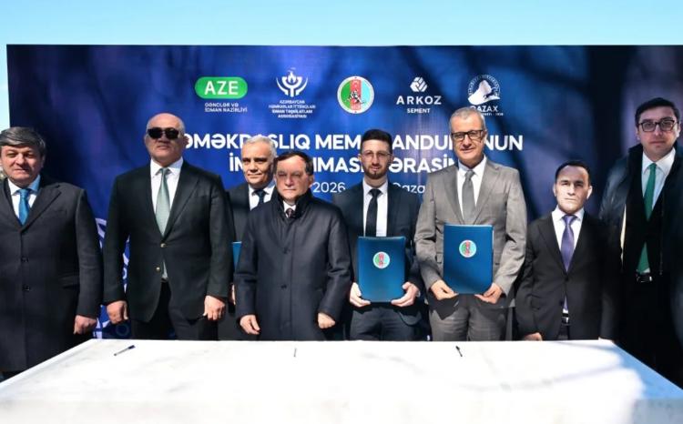 Prosport.Az xəbər verir ki, 2026-cı ilin "İdman paytaxtı" seçilmiş Qazax rayonunda baş tutan tədbirdə AGF-nin baş katibi Pərvin Piriyev, AHİİTA-nın direktoru vəzifəsini müvəqqəti icra edən Fikrət Hacıyev, "Arkoz Qazax Sement Zavodu" MMC-nin direktoru Murat Çağlayan üçtərəfli əməkdaşlığa imza atıblar.