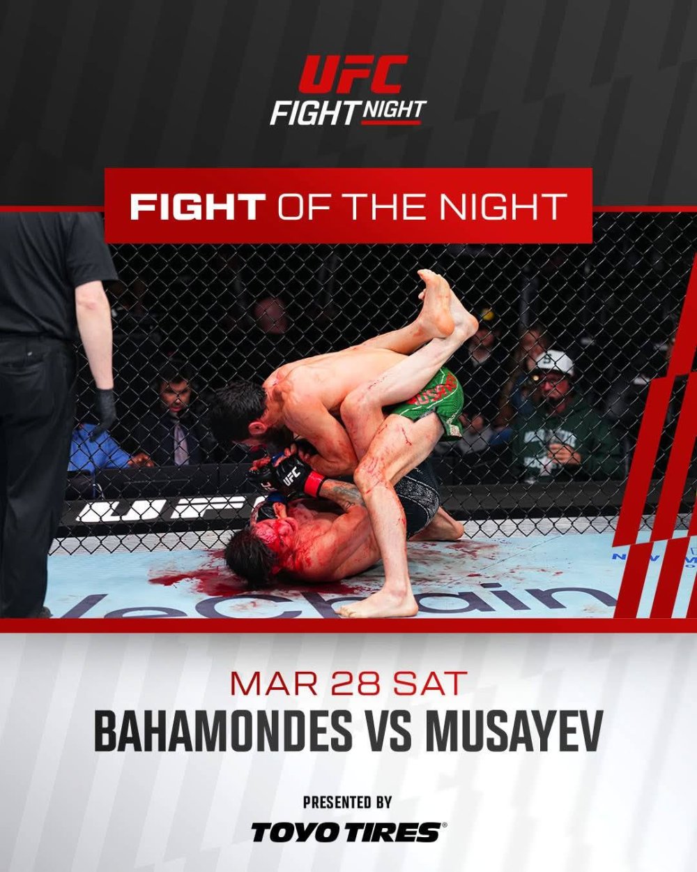 Beləliklə, Tofiq Musayevlə İqnasio Baamondesin görüşü gecənin döyüşü seçilib. Hər 2 idmançıya 100 min dollar veriləcək. Gecənin performansını göstərən idmançılar isə meksikalı Aleksa Qraso və amerikalı Co Payfer olub. Onların hər biri 100 min dollar qazanıb.