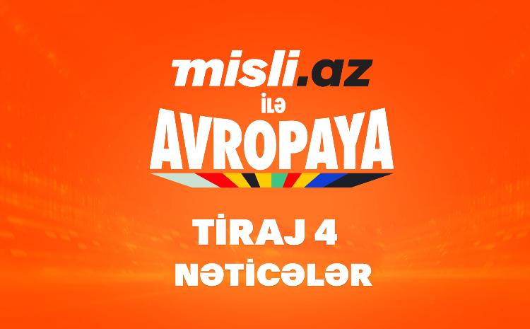 Ölkənin qanuni şans oyunları mərkəzi Misli.az-ın stimullaşdırıcı lotereyasının son – 4-cü tirajı keçirilib. “Misli.az ilə Avropaya” adlı stimullaşdırıcı lotereyada ümumilikdə 24 nəfər qalib adını qazanıb.