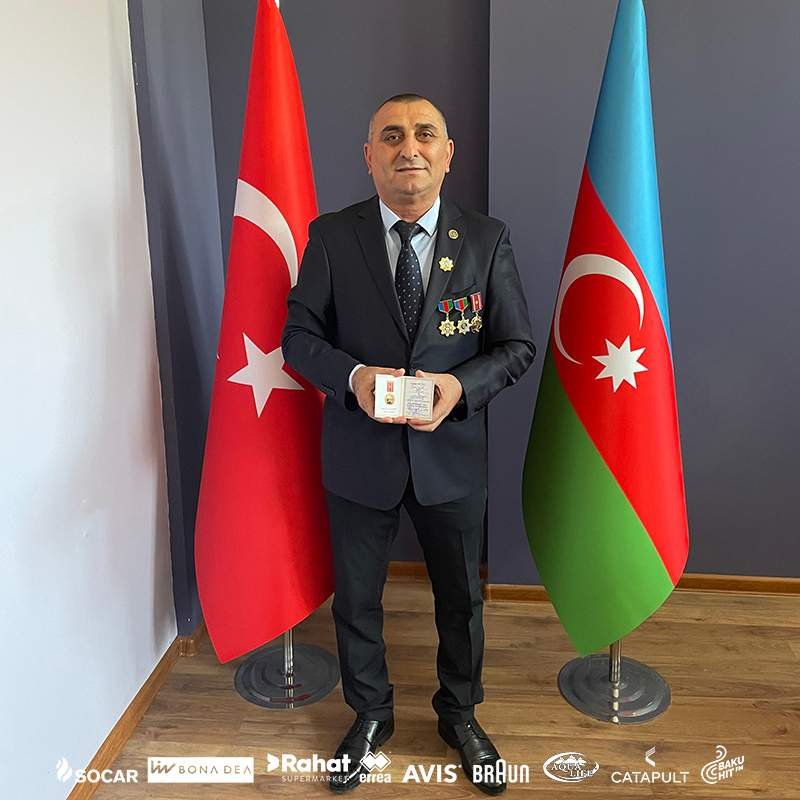 “Mən könüllü olaraq 1992-1993-cü illərdə Qarabağda – Ağdamda Milli Qəhrəman Allahverdi Bağırovun dəstəsində döyüşmüşəm. Həmin 1 il ərzində dəfələrlə ağır döyüşlərdə iştirak etmişəm. Buna görə də dövlətimiz tərəfindən mükafatlandırılmışam. “Qarabağ müharibə veteranı” və “Milli Ordu-100” medalları ilə təltif olunmuşam. 26 İyul – Silahlı Qüvvələr Gününə həsr olunmuş tədbirdə isə qərara gəldilər ki, məni “Böyük Zəfər” medalı ilə də təltif etsinlər və elə bu gün təltif olundum. Bu mənim üçün qürur hissidir. Çünki bir vətəndaş kimi cəmiyyətdə böyük rol oynamışam. Həm də “Neftçi” klubunu təmsil etdiyim üçün fəxr edirəm. Bu zəfərə görə ilk növbədə Ali Baş Komandan İlham Əliyevə öz minnətdarlığımı bildirirəm. Artıq bizim torpaqlarımız azad olunub. Allah bütün şəhidlərimizə rəhmət eləsin! Ona görə də mən bu gün bu medalı böyük qürur hissi ilə gəzdirirəm. Bildiyiniz kimi, 1992-ci ilin yanvarından indiyə kimi qısa fasilələrlə “Neftçi”də çalışıram, 3 il Azərbaycan U-17 milli komandasının baş məşqçisi olmuşam. “Neftçi” mənim həyatımdır. Burada mənə verilən dəyərə görə klub rəhbərliyinə, “Neftçi” camiəsinə təşəkkür edirəm. Bu medal nəinki mənə, “Neftçi” klubuna da verilən dəyərdir. Çünki mən müharibəyə “Neftçi”nin işçisi kimi getmişdim. Avtomatımın üzərində də “Neftçi” Futbol Klubu” yazılmışdı”.